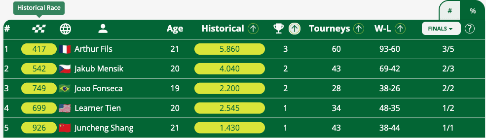Moreover, many rankings that mix various scoring types, though wisely calibrated, end up repeatedly evaluating the same data, essentially each match played. Logically, the player who has clinched more titles has won more matches, accumulated more points, secured higher rankings, etc.