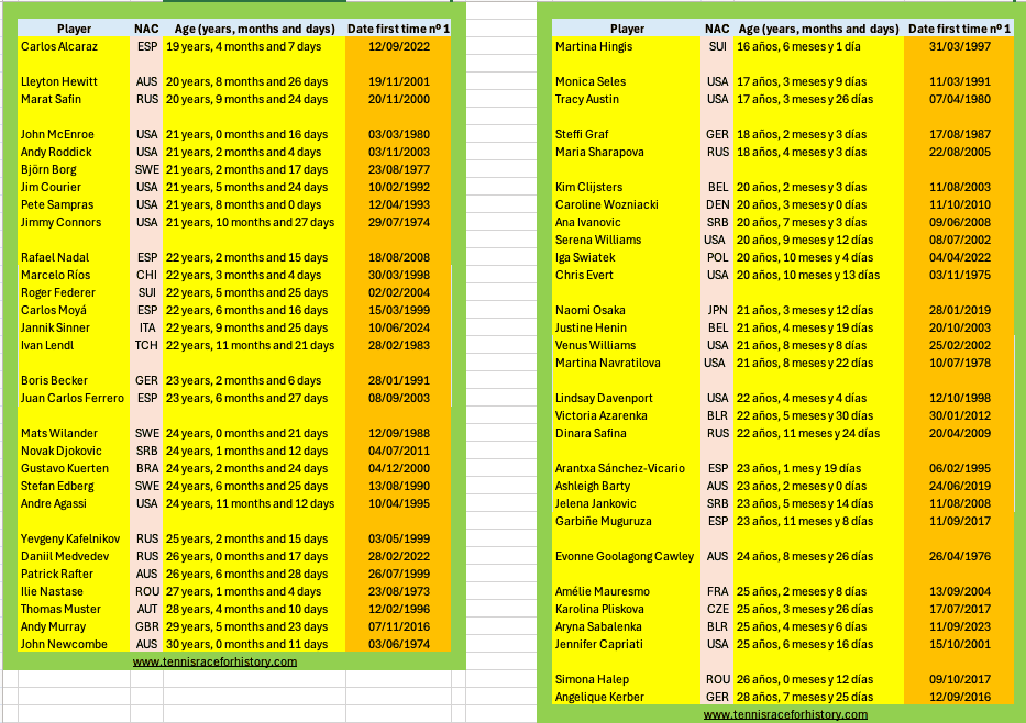 Ranking of the greatest tennis players in history by viewing a comprehensive table,
