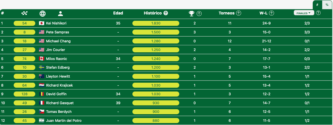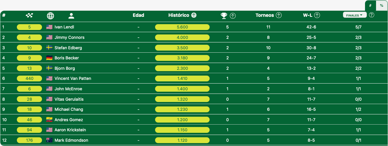 En cuanto a dominadores, Ivan Lendl encabeza con claridad el palmarés gracias a sus 6 títulos y 10 finales, acumulando un balance de 62-11. Le sigue Stefan Edberg, con 6 trofeos también y un récord de 57-10, siempre muy sólido en la pista rápida japonesa.