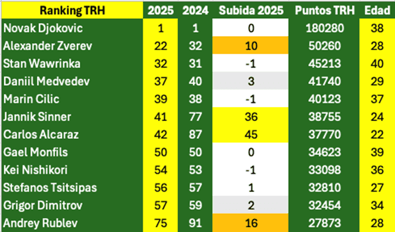 Movimientos en el Ranking de la Carrera del Tenis por la Historia (TRH)