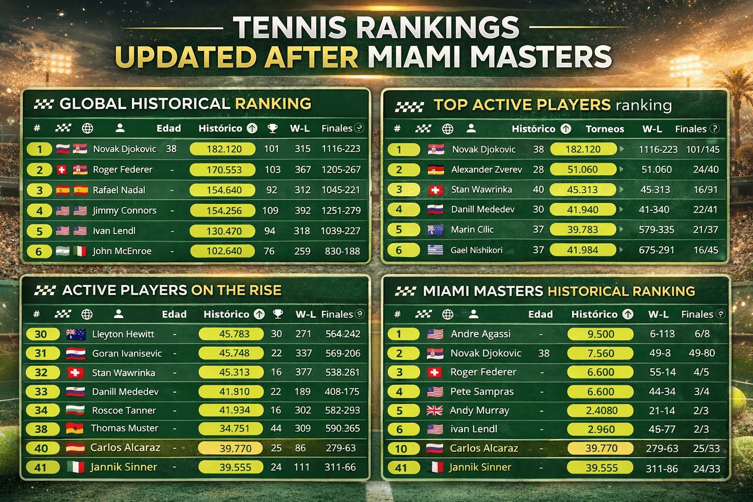 Ranking histórico actualizado tras Miami